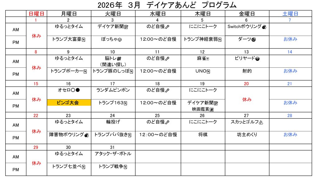 2026年3月のプログラムは、こんな感じです。